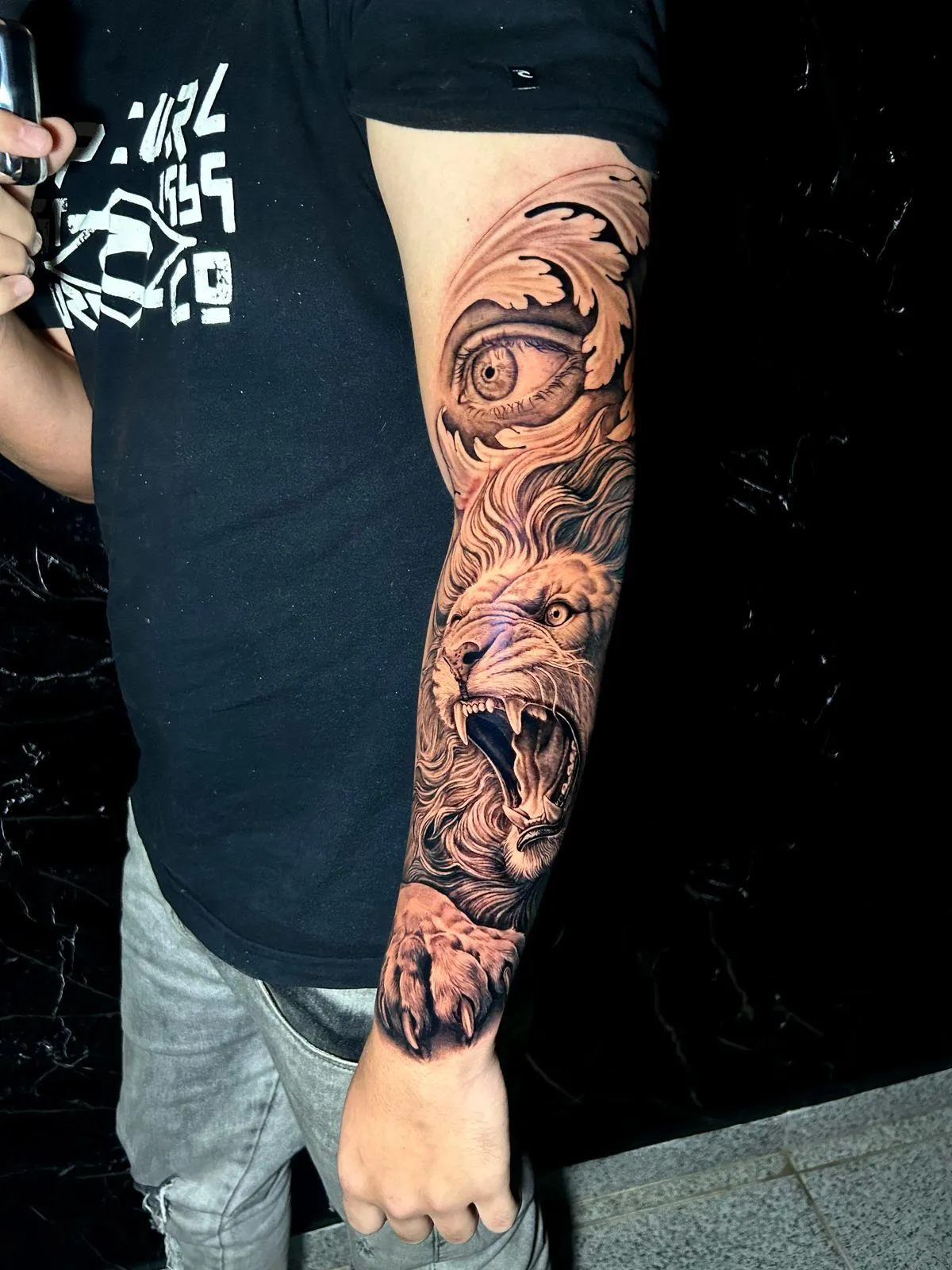 O Lucas também mandou muito bem na clareza do atendimento, tanto antes quanto depois da tatuagem. O mais legal é que ele desenhou boa parte da arte direto na minha pele, e sempre perguntava se eu estava curtindo o desenho. Isso fez toda a diferença e a tatuagem ficou com uma vibe única, personalizada, quase como se fosse feita sob medida. Ele realmente transformou minha pele em uma verdadeira obra de arte.